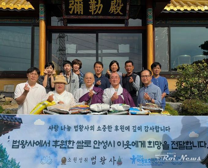 [ 로이뉴스(Roi News) 이지수 기자 ] 안성시 보개면에 위치한 법왕사는 2025년 9월 22일(월) 쌀 1,080kg(10kg 108포대)를 안성시아동보호전문기관에 기탁했다.