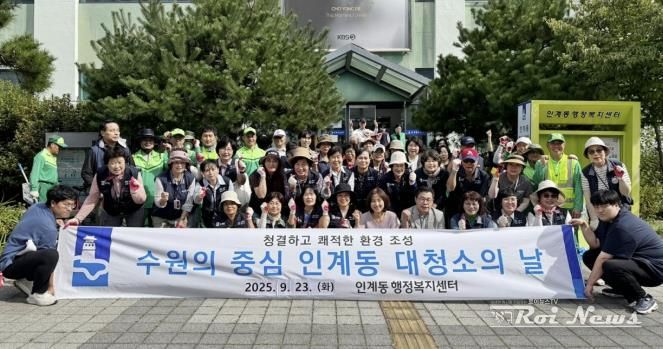 [ 로이뉴스(Roi News) 이지수 기자 ] 수원시 팔달구 인계동은 지난 23일 오전, 인계동 수원시청 부근 인계박스 및 장다리로 일대 등 화단과 대로변을 중심으로 인계동 단체, 환경 관리원 및 주민 등 70여 명과 함께 추석맞이 일제 대청소를 실시했다.
