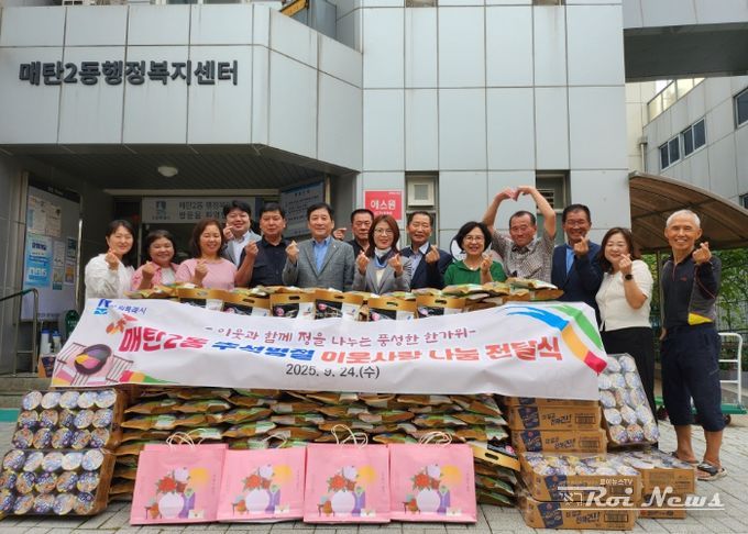 [ 로이뉴스(Roi News) 이지수 기자 ] 수원시 영통구 매탄2동은 24일, 민족 최대 명절인 추석을 앞두고 관내 어려운 이웃을 위한 ‘이웃사랑 나눔 전달식’을 개최했다.
