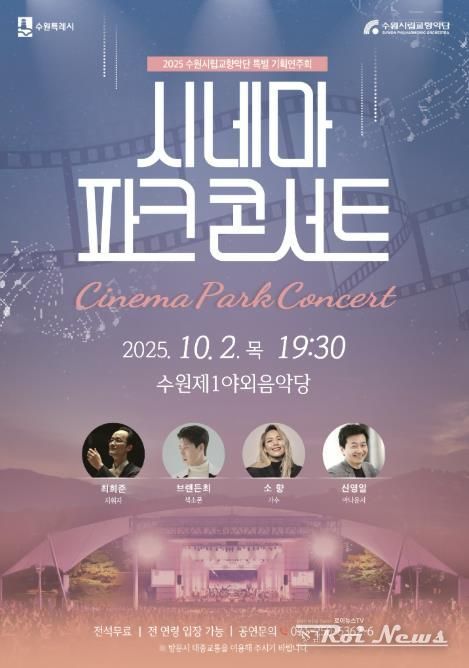 [ 로이뉴스(Roi News) 이지수 기자 ] 수원특례시는 10월 2일 오후 7시 30분 수원제1야외음악당에서 ‘시네마 파크 콘서트’를 연다.