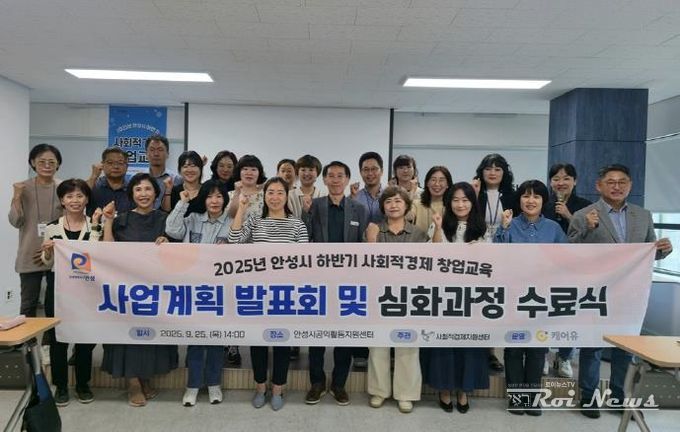 [ 로이뉴스(Roi News) 이지수 기자 ] 안성시는 9월 25일 안성시공익활동지원센터 교육장에서2025년 하반기 사회적경제 창업교육 심화과정 수료식을 성황리에 개최했다.