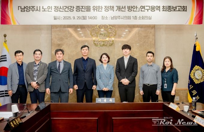 [ 로이뉴스(Roi News) 이지수 기자 ] 남양주시의회는 29일 남양주시의회 소회의실에서 의원 연구단체인 ‘남양주시 노인 정신건강 증진을 위한 정책 개선방안 연구모임’의 연구용역 최종보고회를 개최했다.