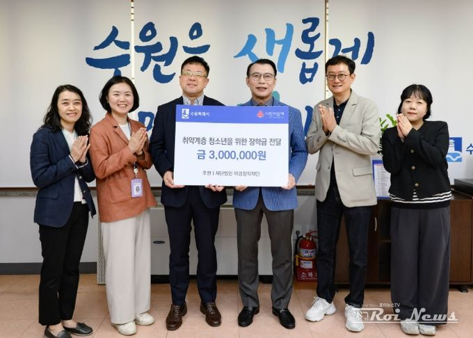 [ 로이뉴스(Roi News) 이지수 기자 ] 아경장학재단이 “취약계층 중·고등학생에게 전달해 달라”며 수원특례시에 300만 원을 기탁했다.