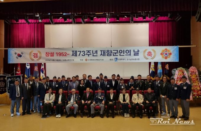 [ 로이뉴스(Roi News) 이지수 기자 ] 김현수 수원시 제1부시장이 14일 수원시보훈교육연구원 대강당에서 열린 제73주년 재향군인의 날 기념식에 참석해 “지역사회의 중심에서 든든한 울타리가 되어주시는 재향군인의 헌신에 감사하다”고 말했다.