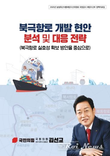 [ 로이뉴스(Roi News) 이지수 기자 ] 국회 농림축산식품해양수산위원회 김선교 의원(국민의힘, 경기 여주시‧양평군)은 농림축산식품부와 해양수산부 국정감사를 맞아 '친환경‧유기농업을 기후위기 대응과 지속가능 농정의 중심으로 전환'과 '북극항로 개발 현안 분석 및 대응 전략' 등의 정책자료집을 각각 발간했다고 전했다.