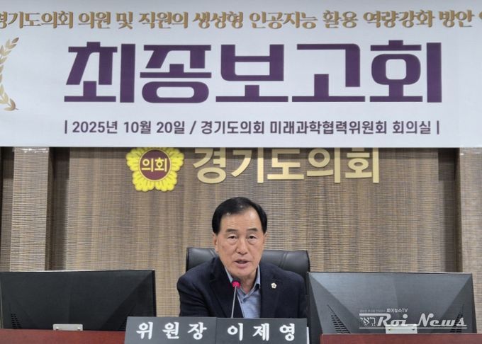 [ 로이뉴스(Roi News) 이지수 기자 ] 경기도의회 미래과학협력위원회는 10월 20일, 도의회 위원회 회의실에서 『경기도의회 의원 및 직원의 생성형 인공지능 활용 역량강화 방안 연구』에 대한 최종보고회를 개최했다.