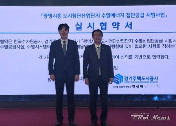 [ 로이뉴스(Roi News) 이지수 기자 ] 경기주택도시공사(GH)는 3일 GH 수원 본사 9층 역량개발센터에서 한국수자원공사(K-water)와 함께 ‘광명시흥 도시첨단산업단지 수열에너지 집단공급 시범사업’ 추진을 위한 실시협약을 체결했다고 밝혔다. 이 자리에는 양 기관 관계자 약 30명이 참석했다.