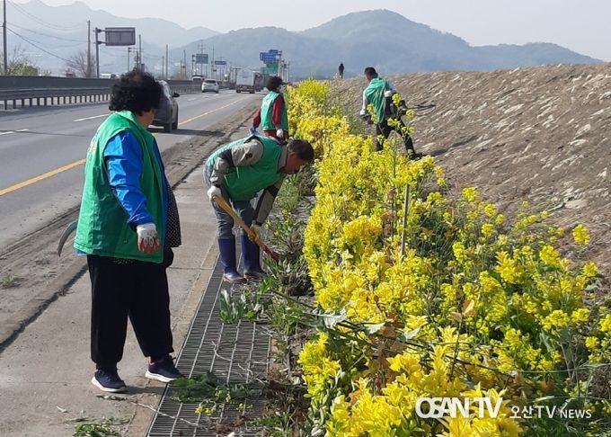 [ 로이뉴스(오산TV) 이경호 기자 ] 벚꽃이 피고 지는 4월, 봄날의 따뜻한 햇살 속에서 평택시 현덕면 새마을지도자부녀회에서는 지난 19일 평택시의 대표적 경관이자 나들목인 평택호 방조제에 거주민과 방문객들에게 우리 시의 쾌적하고 수려한 이미지를 제공하기 위해서 레드로빈 홍가시 700주와 황금사철나무 700주를 심고, 제초 작업, 가지치기 등 경관 관리를 했다.