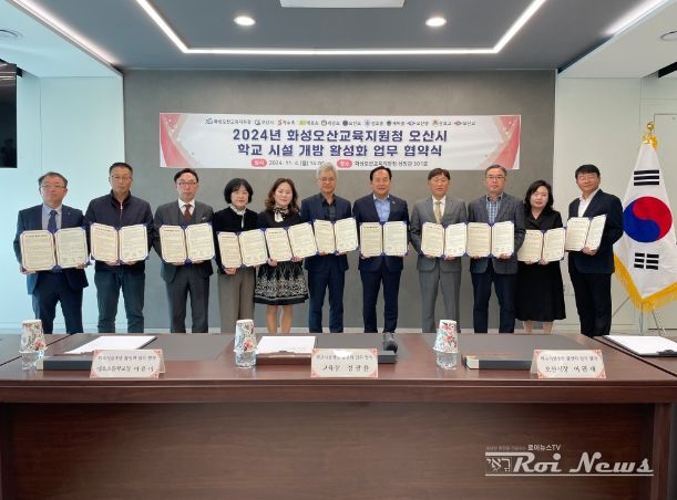 [ 로이뉴스(Roi News) 이지수 기자 ] 경기도화성오산교육지원청은 11월 4일 교육지원청 성장관 3층 회의실에서 오산시, 지역 내 9개교 초·중·고등학교와 학교시설 개방 활성화를 위한 업무협약을 체결했다.