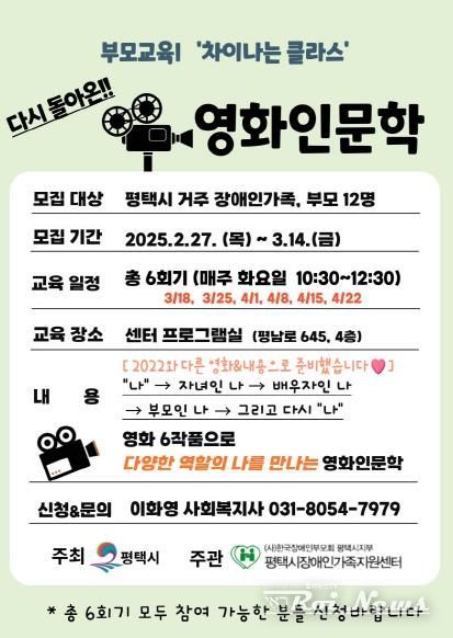 평택시장애인가족지원센터 강태숙 센터장은 “이번 부모 교육을 통해 장애인 가족 부모님들이 자아를 되찾고 건강한 에너지를 받는 기회가 됐으면 좋겠다”라고 전했다.