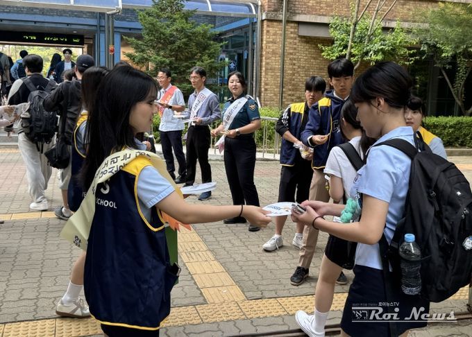 이날 캠페인은 등굣길 시간대에 맞춰 진행됐으며, 경찰과 교육청 관계자, 교직원, 학부모, 학생들이 함께 참여해 예방 메시지를 담은 홍보용 부채를 나누며 따뜻한 인사를 건넸다.