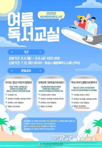 [ 로이뉴스(Roi News) 이지수 기자 ] 화성시문화관광재단이 운영하는 화성시립도서관은 오는 7월 29일부터 8월 20일까지 여름방학을 맞아 어린이 대상 여름독서교실 및 방학 특강 프로그램을 운영한다. 이번 행사는 관내 19개 도서관에서 총 56개 프로그램으로 구성되며, 어린이들이 도서관을 통해 책과 친해지고, 다양한 체험을 즐길 수 있도록 기획됐다.