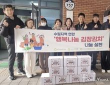 [ 로이뉴스(Roi News) 이지수 기자 ] 수원시 장안구 연무동은 지난 10일 보훈원 내 보훈원 보훈교육연구원 보훈재활체육센터 수원보훈요양원 직원들이 사회공헌 활동 일환으로 마련한 김장김치 10kg 10박스를 기부받았다. 이번 김장김치 나눔은 연무동 이웃들의 따뜻한 겨울나기를 돕기 위해 보훈원 소속 직원들이 자발적으로 성금을 모아 추진한 것으로, 지역사회와의 상생을 실천하는 의미있는 나눔이 됐다. 보훈원 관계자는 “지역과 함께하는 기관으로서 연무동 주민들에게 조금이나마 도움이 되고자 직원들이 마음을 모았다”며 “정성껏 준비한 김장김치가 이웃들의 겨울을 따뜻하게 데워주었으면 한다”고 전했다. 공순정 연무동장은 “관내 이웃을 위해 뜻깊은 나눔을 실천해 주신 보훈원 직원 여러분께 진심으로 감사드린다”며 “기부받은 김장김치는 도움이 필요한 가정에 신속하고 공정하게 전달하겠다”고 말했다. 연무동 행정복지센터는 앞으로도 지역 내 유관기관과의 협력을 통해 주민이 체감할 수 있는 나눔 활동을 지속적으로 추진해 나갈 계획이다.