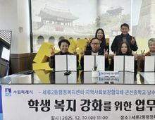[ 로이뉴스(Roi News) 이지수 기자 ] 지난 10일 세류2동 학생 복지 강화를 위해 세류2동 행정복지센터 및 지역사회보장협의체·권선중학교·남수원초등학교 간 상호협력을 위한 업무 협약을 체결했다. 각 기관은 이번 협약을 통해 △ 위기 가구(학생) 발생 예방 및 지원 △ 대상자 발굴 연계 △ 관련 사업 홍보 및 수행 등 관내 학생 복지 강화를 위해 적극협력 하기로 했다. 정금미 지역사회보장협의체 위원장은 "학교 현장에서 발견되는 다양한 복지문제를 지역사회와 함께 해결할 수 있는 기반이 마련됐다며 학생들이 건강하게 성장할 수 있도록 지원하겠다”라고 말했다. 변영호 세류2동장은 “학교와 긴밀히 협력해 실질적인 복지 서비스를 제공함으로써, 행복과 웃음이 피어나는 정겨운 세류2동을 만들기 위해 힘쓰겠다”라고 말했다.