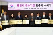 [ 로이뉴스(Roi News) 이지수 기자 ] 용인특례시는 11일 시청 접견실에서 ‘2025년 용인시 우수기업 인증제’ 심의 결과 선정된 ‘올해의 우수기업’ 10개 사에 인증서를 전달했다. 이상일 용인특례시장은 이들 기업 대표와 임직원들을 만나 축하와 격려 인사를 나누고 우수기업 인증서와 현판을 전달했다. 이상일 시장은 “우리 경제가 어려운 가운데서도 기업 활동을 잘 해주셔서 우수기업으로 선정된 것을 축하드린다”며 “각자 분야에서 그동안 많은 노하우를 쌓아왔기에 경제가 어려운 가운데서도 성과를 냈고, 우리 지역 경제에도 큰 보탬이 돼 주셔서 감사드린다”고 말했다. 이 시장은 “기업 활동으로 한 가족의 가장은 힘을 얻어 가정을 잘 꾸려갈 수 있고, 신규 일자리를 찾는 사람에게는 희망을 주셨다”며 “기업인들이 활동하실 수 있도록 환경을 잘 개선해 나갈 것”이라고 했다. 시는 매년 경영 실적, 기술·품질 경쟁력, 지역사회 기여도 등 다양한 지표를 종합 평가해 지역경제 발전에 기여한 중소기업을 우수기업으로 인증하고 있다. 올해 선정된 기업은 ▲㈜대성티엠씨 ▲신명이엔씨㈜ ▲주식회사 에이드로 ▲