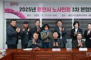 [ 로이뉴스(Roi News) 이지수 기자 ] 용인특례시는 17일 용인시노동복지회관에서 제3차 노사민정협의회 본협의회와 2025년 노사민정협의회 성과보고회를 열었다고 밝혔다. 이날 협의회엔 노사민정협의회 위원장인 이상일 시장과 노사민정협의회 위원들이 참석한 가운데 지역 노동 현안과 향후 노사민정 상생 협력 사업 방향 등을 논의했다. 이어 열린 성과보고회에선 노사상생 발전과 지역 노동 환경 개선에 기여한 유공자들에 대한 표창과 감사패 수여가 진행됐다. 노동자 권익 증진과 취약노동자 보호, 산업현장 안전 강화 등 노사상생 발전에 기여한 드림원 박단영 대표이사, 예송장애인가족협회 이원경 대표 등 10명이 표창을 받았다. 노사민정협의회 활성화와 지역 상생의 노사문화 정착에 기여한 공로로 오기환 고용노동부 경기지청장과 처인드리미 봉사단 등 5명이 감사패를 받았다. 이상일 시장은 “용인에 반도체 1000조 원 투자 시대가 열렸다”며 “저는 앞으로 투자가 1500조 원을 넘을 것으로 본다”고 말했다. 이 시장은 “SK하이닉스가 600조 원을 용인 반도체클러스터 일반산업단지에 투자하게
