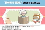 [ 로이뉴스(Roi News) 이지수 기자 ] 안성시 중앙도서관은 오는 10월 29일부터 12월 24일까지 매주 수요일 오전 10시부터 12시까지(총9회) 진행되는 『옛이야기 할머니』양성과정의 수강생을 모집한다. 이번 과정은 우리 전통 설화와 구전문화를 이해하고, 이를 바탕으로 어린이들에게 옛이야기를 들려줄 수 있는 이야기 구연 역량을 키우는 특화 교육 프로그램으로 교육은 송경애 강사(한국국학진흥원 및 아름다운 이야기 할머니 교육강사)가 진행하며, 이야기 전달 기법, 발성 훈련, 스토리텔링 실습 등 실질적인 교육 중심으로 구성된다. 참여 대상은 60세 이상 여성 20명으로, 접수는 10월 14일부터 도서관 홈페이지, 전화 또는 방문을 통해 신청할 수 있다. 도서관 관계자는 “지역 어르신들이 삶의 지혜와 전통 이야기를 전하며 세대 간 소통의 다리를 놓는 뜻깊은 과정이 될 것이고 본 과정을 수료한 참여자들은 2026년 ‘책 읽어주기’ 자원봉사 프로그램에 참여할 수 있도록 안내할 계획이다.”라고 전했다.