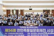 [ 로이뉴스(Roi News) 이지수 기자 ] 용인특례시는 10일 시청 컨벤션홀에서 민족통일 용인특례시협의회 주관으로 ‘민족통일 용인특례시대회와 제56회 한민족통일문화제전 시상식’이 열렸다고 밝혔다. 이날 행사는 한반도의 평화와 통일을 주제로 한 글짓기·웹툰·포스터·사진 공모전의 입상작을 시상하고, 유공회원에게 표창을 수여하고자 마련됐다. 민족통일 용인특례시협의회는 1981년 창립한 단체로 매년 태극기 나눔을 비롯해 지역사회 통일운동 의식 제고 등을 위한 다양한 활동을 벌이고 있다. 이날 협의회는 홍보자료 시청, 통일 관련 동영상과 남북 언어 차이에 대한 학습자료를 시청하고 간단한 통일 퀴즈대회를 거쳐 우수 작품 3개를 낭독했다. 이어진 시상식에서는 용인특례시장상 3명 등 총 36명이 수상의 영예를 안았다. 유한종 민족통일 용인특례시협의회장은 “민족의 염원인 한반도 평화통일을 위해 어려운 여건 속에서도 적극 지원해 주시는 이상일 시장님께 감사드린다”며 “대한민국 통일의 그 날이 올 때까지 협의회 회원의 뜻을 한데 모아 더욱 적극 활동하겠다”고 했다. 이상일 시장은 “대한민