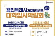 [ 로이뉴스(Roi News) 이지수 기자 ] 용인특례시는 12월 1일 오전 10시부터 오후 5시 30분까지 시청 에이스홀과 종합민원상담창구에서 ‘하반기 2026학년도 대학입시박람회’를 연다고 25일 밝혔다. 이번 박람회는 예비수험생들에게 변화하는 입시 환경에 필요한 정보를 제공하고자 마련됐다. 입시전략 특강과 고3 수험생들의 수능성적을 분석해 학생 개인에 최적화된 대입전략을 지원하기 위한 진학컨설팅이 진행된다. 특강은 시청 에이스홀에서 1부와 2부로 나누어 운영되며, 초등학생부터 고등학생까지 예비수험생과 학부모 등 각 450명이 참여할 수 있다. 1부는 오전 10시~12시까지 최승후 강사가 ‘용인특례시 학생을 위한 의학·약학계열 진학과 학생부 전략’을 주제로 강의한다. 2부는 오후 2시~4시까지 윤윤구 강사가 ‘고교학점제 시대에 맞는 대학입시 트렌드’를 주제로 대입환경 변화에 따른 수시·정시대비 전략을 안내한다. 시청 1층 종합민원상담창구에서는 오후 1시부터 5시 30분까지 ‘정시대비 1:1 진학컨설팅’이 진행된다. 총 120명의 고3 학생과 학부모가 참여할 수 있으며,