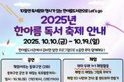 [ 로이뉴스(Roi News) 이지수 기자 ] 수원시청소년청년재단 수원청소년문화센터 한아름도서관은 2025. 독서의 달을 기념하여‘한아름독서축제’를 10월 10일부터 10월 19일까지 운영한다. 이번 독서축제는 △스피치 강사와 함께하는 북토크 강연 △동화구연 공연 △재미 두배 1+1 체험활동 △원화 명화 전시 △도서관 이용자 대출 이벤트 등 청소년과 지역주민이 함께 공감하며 즐길 수 있는 다양한 프로그램으로 구성했다. △스피치 강사와 함께하는 북토크 강연 △동화구연 공연은 사전접수를 통해 참여가 가능하며, 재미 두배 1+1 체험 활동은 별도 접수 없이 현장에서 선착순 참여로 가능하다. 참가비는 전액 무료이다. 사전접수는 10월 1일 수요일부터 선착순으로 모집하며, 신청 방법은 수원시청소년청년재단 홈페이지‘한아름독서축제’안내문의 QR코드로 접속하여 신청할 수 있다. 한아름도서관은 이번‘한아름독서축제’를 통해 청소년과 지역주민의 독서 문화를 장려하고 도서관 활성화를 도모하고자 한다.