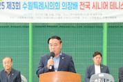 [ 로이뉴스(Roi News) 이지수 기자 ] 수원특례시의회는 9월 24일 만석공원 테니스장에서 열린 ‘제3회 수원특례시의회 의장배 시니어 테니스대회 개회식’ 참석했다. 이번 대회는 테니스를 사랑하는 시니어 동호인들이 한자리에 모여 기량을 겨루고 화합하는 자리로 마련됐다. 개회식에는 이재식 의장을 비롯해 오세철 예산결산특별위원장, 김동은 의원, 이재선 의원, 현경환 의원, 수원시 체육회 관계자 등이 함께해 선수들을 격려했다. 이재식 의장은 축사에서 “오늘은 테니스를 사랑하는 분들이 모두 모인 뜻깊은 날”이라며 “양일간의 대회가 부상 없이 안전하게 마무리되길 바라며, 여러분 모두의 승승장구를 힘껏 응원하겠다”고 말했다. 이어 “수원특례시의회는 시민들께서 생활체육을 통해 활기차고 건강한 일상을 누리실 수 있도록 적극 지원하겠다”고 덧붙였다.