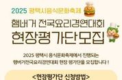 [ 로이뉴스(Roi News) 이지수 기자 ] 평택시는 오는 25일 농업생태원에서 ‘2025 평택시 음식문화축제’를 통해 ▲전국 요리경연대회 ▲평택 지역 맛집 및 세계음식 시식·체험관 ▲노 오븐 베이킹 체험관 ▲탄소중립 실천·홍보관 등 다채로운 부스가 운영돼 시민들에게 풍성한 경험을 선사할 예정이다. 전국 요리경연대회는 ‘평택의 맛, 나만의 아이디어로 버거를 완성하다’를 주제로 총 18팀(일반부 10, 가족부 8)이 본선에 진출해 열띤 경연을 펼친다. 지난해와 달리 참가 부문이 일반부와 가족부로 확대됐으며, 시상 규모도 10팀 740만 원으로 늘어나 큰 기대를 모으고 있다. 경연대회의 생생한 현장을 함께할 시민 현장평가단도 사전 모집한다. 10월 24일(금) 오전 9시부터 오후 5시까지 일반부와 가족부 각 20명씩 무작위로 선착순 접수받으며, 편식 없는 고등학생 이상이라면 누구나 신청할 수 있고, 선정된 지원자는 실제 경연 현장에서 요리를 맛보고 평가하게 된다. 또한, 오전 10시에는 빵과당신 인재홍(대한민국 제과명장)이 진행하는 베이킹 체험이 마련돼 있으며, 참가 신청은 24일(금) 오전 10시부터 평택예총