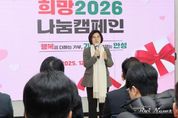 [ 로이뉴스(Roi News) 이지수 기자 ] 안성시는 12월 4일 경기 사회복지공동모금회와 함께 ‘희망 2026 나눔캠페인’ 행사를 열고, 연말연시 따뜻한 나눔 분위기 확산에 나섰다. 이날 행사에는 김보라 안성시장을 비롯하여 경기 사회복지공동모금회 김효진 사무처장 및 관계자, 그리고 지역 내 주요 기부 참여 기업인 ㈜그랜드썬기술단에스피, 한솔아이원스(주), ㈜삼양컴텍, 한일크린에너지(주), 골프클럽큐레저산업(주) 등 기업인들이 함께해 자리를 빛냈다. ‘희망 2026 나눔캠페인’은 2025년 12월 1일부터 2026년 1월 31일까지 두 달간 진행되며, 안성시의 모금 목표액은 5억 원이다. 시민과 지역 기업이 정성으로 모은 성금과 물품은 관내 어려운 이웃에게 전달될 예정이다. 행사 주요 내용으로는 캠페인 소개를 시작으로 ‘사랑의 온도탑 제막식’과 ‘명사 열매달기’ 행사가 진행됐으며, 이어 기부금(품) 전달식이 열려 본격적인 나눔캠페인의 출발을 알렸다. 김보라 안성시장은 “이번 ‘희망 2026 나눔캠페인’을 통해 따뜻한 나눔의 가치가 지역사회 전반에 퍼지길 바란다”며 “시민 모두가 동참해 어려운 이