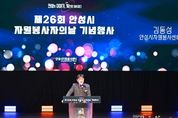 [ 로이뉴스(Roi News) 이지수 기자 ] 안성시자원봉사센터는 12월 10일 안성맞춤 아트홀 소공연장에서 ‘제26회 자원봉사자의 날 기념행사’를 개최했다. 이번 행사는 안성시장, 국회의원, 시의회 의장 등 내빈을 비롯해 수상자와 자원봉사자, 유관 기관장, 축하객 등 약 300명이 함께해 지역사회 나눔과 봉사의 가치를 되새기는 뜻깊은 자리로 마련됐다. 행사는 2025년도 활동 영상 상영과 뮤지컬팀 “인터미션”의 식전 공연으로 문을 열었으며, 이어 본식에서는 한 해 동안 헌신적으로 활동한 개인과 단체 자원봉사자들에게 감사와 격려의 뜻을 전하는 시상식이 진행됐다. 안성시자원봉사센터 김동성 센터장은 ‘올 한 해에도 지역사회의 다양한 현장에서 따뜻한 마음으로 함께해 주신 자원봉사자분들에게 진심으로 감사드린다’라며 ‘앞으로도 자원봉사자들이 자긍심을 가지고 지속적으로 활동할 수 있도록 최선을 다해 지원하겠다’라고 전했다.