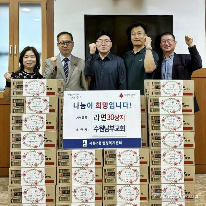 [ 로이뉴스(Roi News) 이지수 기자 ] 수원시 권선구 세류2동 소재 수원남부교회는 지난 23일, 지역 내 취약계층을 위해 라면 30상자를 세류2동 행정복지센터에 기부했다.