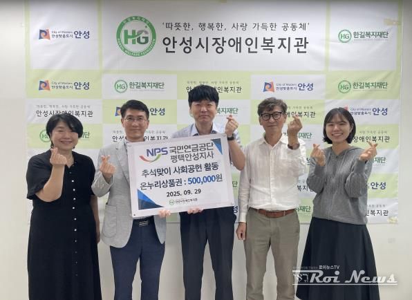 국민연금공단 평택안성지사 조창림 지사장은 “추석 명절을 앞두고 지역 내 장애인분들에게 따뜻한 마음을 나눌 수 있어 뜻깊다”며 “앞으로도 지역사회와 함께하는 다양한 사회공헌활동을 지속적으로 펼쳐 가겠다”고 말했다.