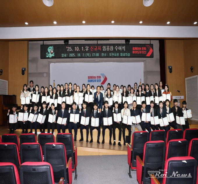 [ 로이뉴스(Roi News) 이지수 기자 ] 오산시는 지난 10월 2일 오산시청 대회의실에서 2025년 신규 임용 공직자 52명을 대상으로 임용장 수여식을 개최했다고 밝혔다.