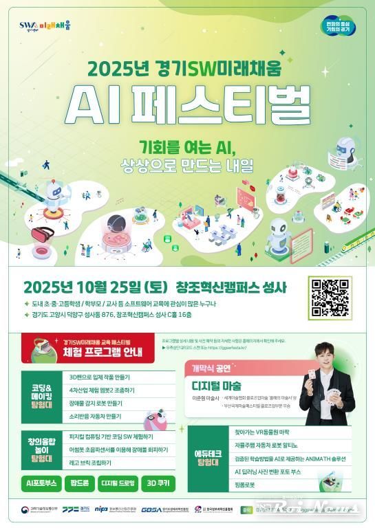 [ 로이뉴스(Roi News) 이지수 기자 ] 경기도는 과학기술정보통신부, 정보통신산업진흥원과 함께 오는 25일 고양 창조혁신캠퍼스에서 ‘기회를 여는 AI, 상상으로 만드는 내일’을 주제로 ‘2025 경기SW미래채움 AI 페스티벌’을 개최한다.