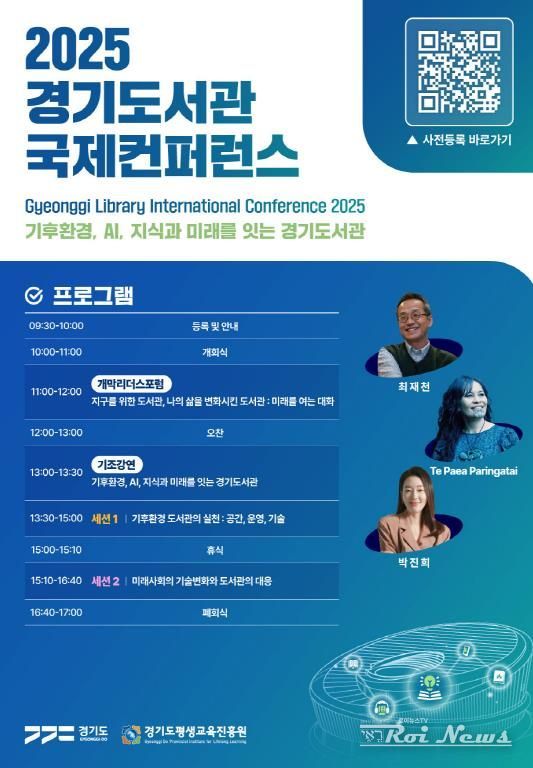 [ 로이뉴스(Roi News) 이지수 기자 ] 경기도와 경기도평생교육진흥원은 오는 23일 수원컨벤션센터 컨벤션홀3에서 ‘기후환경, AI, 지식과 미래를 잇는 도서관’을 주제로 ‘2025 경기도서관 국제콘퍼런스’를 개최한다.