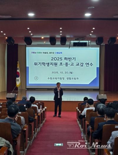[ 로이뉴스(Roi News) 이지수 기자 ] 경기도수원교육지원청은 10월 20일 교육복지종합센터에서 초·중·고등학교 교감을 대상으로 ‘2025 하반기 생명살림 및 위기학생지원 특별 연수’를 운영했다.