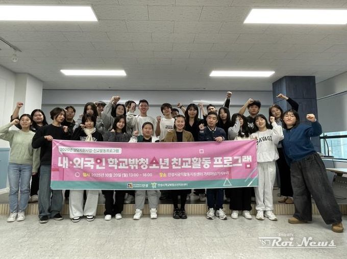 [ 로이뉴스(Roi News) 이지수 기자 ] 안성시학교밖청소년지원센터는 지난 10월 20일 안성공익활동지원센터 가치마당·가치누리에서 내·외국인 학교 밖 청소년이 함께 참여한 친교활동 프로그램을 성황리에 마무리했다.