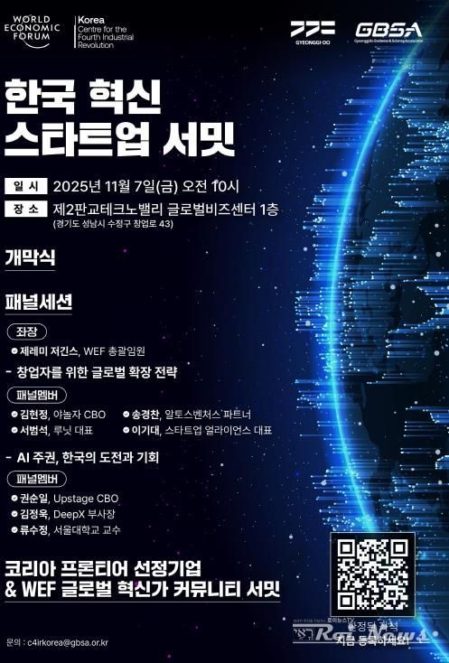 경기도는 오는 7일 세계경제포럼과 공동으로 ‘한국 혁신 스타트업 서밋(Korea Innovators Community Summit)’을 개최한다고 4일 밝혔다. 제2판교테크노밸리 글로벌비즈센터에서 열리는 이번 행사는 세계경제포럼과 경기도가 공동으로 선정한 한국 대표 혁신 스타트업들이 한자리에 모이는 최초의 공식 행사다. 세계경제포럼 혁신가 커뮤니티에 소속된 한국 기업과 함께 국내 유니콘 기업들이 참여한다.