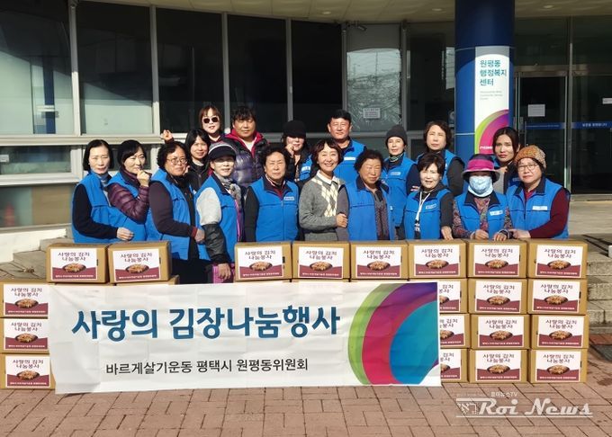 [ 로이뉴스(Roi News) 이지수 기자 ] 바르게살기운동 평택시 원평동위원회는 지난 17일부터 19일까지 관내 홀몸 어르신과 어려운 이웃을 위해 ‘사랑의 김장 나눔 행사’를 진행했다.
