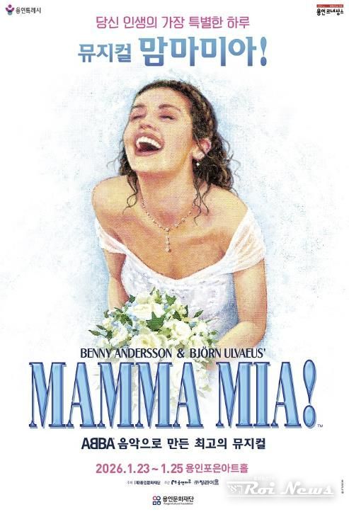 [ 로이뉴스(Roi News) 이지수 기자 ] 용인문화재단은 오는 2026년 1월 23일부터 25일까지 뮤지컬 ‘맘마미아!’를 용인포은아트홀에서 개최한다고 밝혔다. 관람 연령은 초등학생 이상으로, 겨울방학 기간 가족·친구·연인 등 남녀노소 누구나 함께 즐길 수 있는 대표 뮤지컬을 3일간 총 4회에 걸쳐 선보인다.