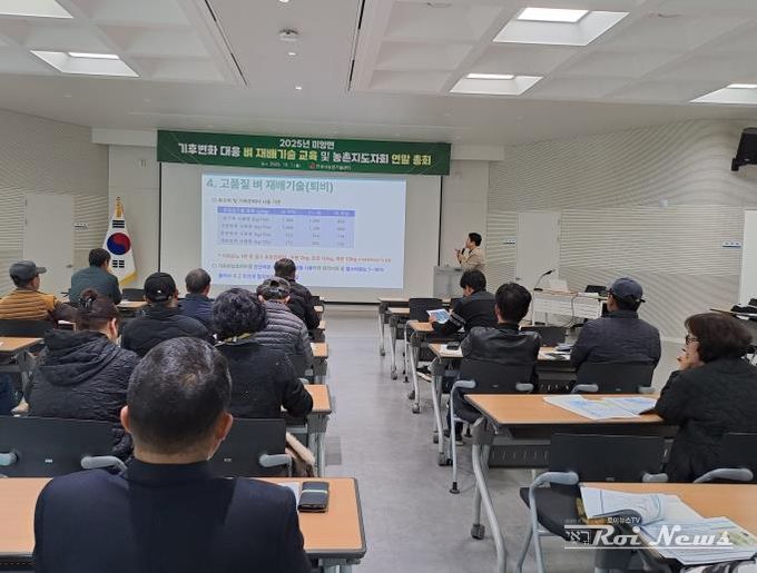 [ 로이뉴스(Roi News) 이지수 기자 ] 안성시농업기술센터 남부농업기술상담소는 지난 12월 1일 ‘2025년 미양면 기후변화대응 벼 재배기술 교육’을 실시했다.
