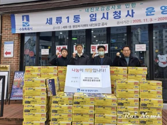 이번 나눔은 겨울철 경제적 어려움을 겪고 있는 취약계층 이웃들에게 작은 힘이 되고자 마련됐으며, 기탁된 라면은 세류1동 내 취약계층 및 도움이 필요한 가구에 전달될 예정이다.