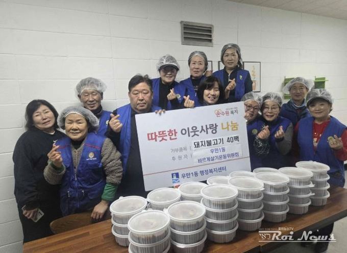 정연직 우만1동 바르게살기운동위원회 위원장은 “회원들이 정성껏 준비한 고기 반찬이 추운 날씨에 따뜻한 도움이 되길 바란다”며 “앞으로도 지속적인 봉사활동을 통해 지역사회 나눔 활동에 힘쓰겠다”고 말했다.