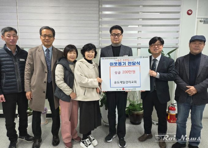 [ 로이뉴스(Roi News) 이지수 기자 ] 공도제일감리교회는 12월 24일 지역사회의 어려운 이웃을 돕기 위해 공도읍에 기부금 200만원을 전달했다.