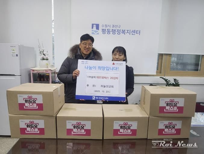 [ 로이뉴스(Roi News) 이지수 기자 ] 수원시 권선구 고색동 소재 하늘성교회는 지난 23일 성탄절을 맞이하여 '위드유박스' 21박스를 평동 행정복지센터에 전달했다.