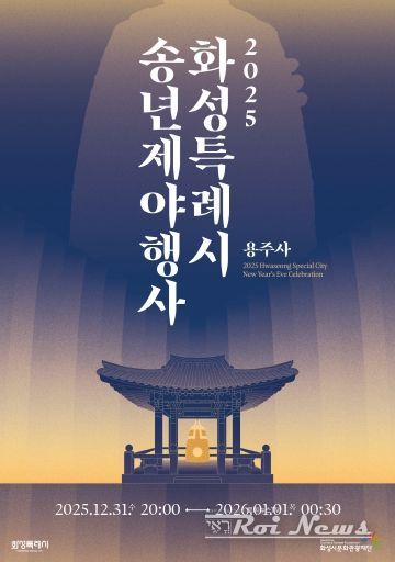 [ 로이뉴스(Roi News) 이지수 기자 ] (재)화성시문화관광재단은 시민과 함께 2025년을 마무리하고 2026년을 맞이하는 '2025 화성특례시 송년 제야행사'를 오는 12월 31일 수요일 오후 8시부터 용주사 일원에서 개최한다.