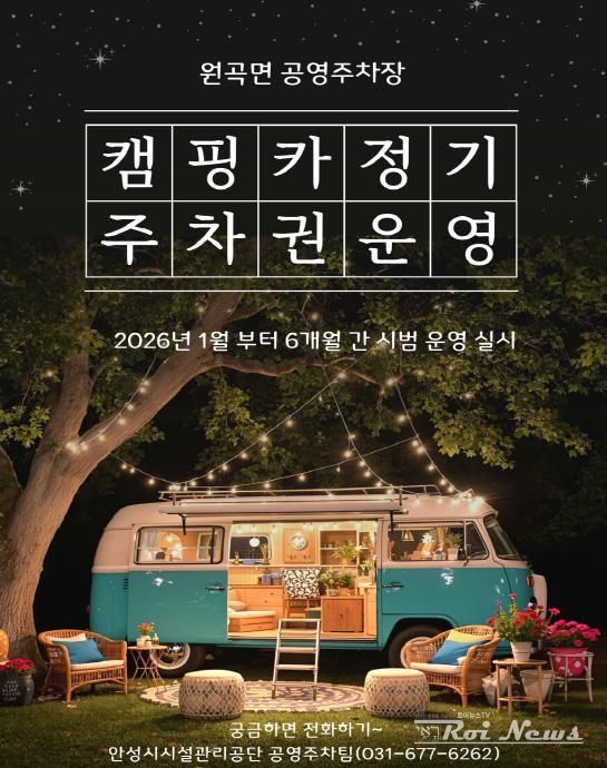 [ 로이뉴스(Roi News) 이지수 기자 ] 안성시시설관리공단은 캠핑 인구 증가에 따른 주차 수요에 대응하고 캠핑카 이용객의 주차 불편을 해소하기 위해 오는 1월부터 원곡면 공영 주차장에서 ‘캠핑카(카라반 포함) 정기주차권’ 시범 운영을 실시한다고 밝혔다.