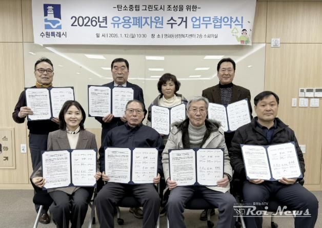 [ 로이뉴스(Roi News) 이지수 기자 ] 수원시 장안구 영화동은 지난 12일 영화동 새마을협의회, 주민자치회, 통장협의회, 관내 아파트관리사무소, 편의점 등 민·관이 참여한 가운데 유용폐자원 수거 활성화를 위한 업무협약(MOU)을 체결했다.