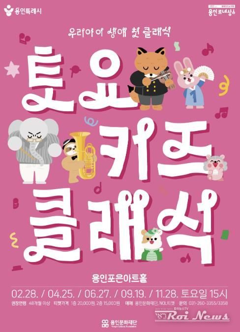 [ 로이뉴스(Roi News) 이지수 기자 ] (재)용인문화재단은 어린이를 위한 해설이 있는 클래식 공연 '2026 토요키즈클래식'을 2월 28일부터 용인포은아트홀에서 개최한다.