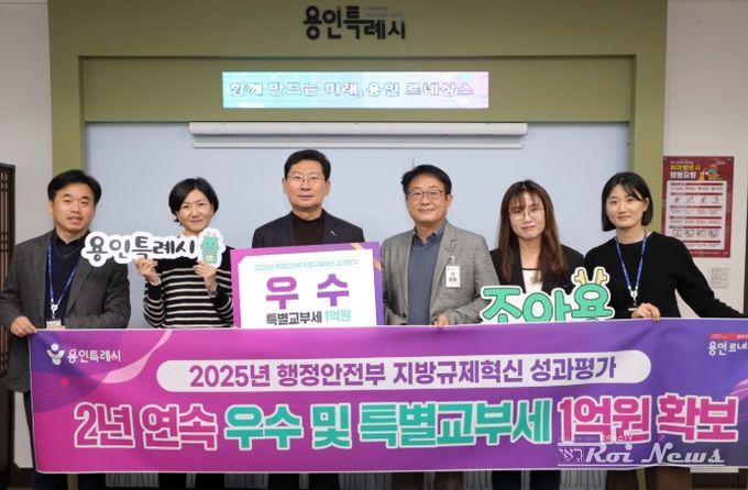 [ 로이뉴스(Roi News) 이지수 기자 ] 용인특례시는 지난해에 이어 ‘지방규제혁신 성과평가’에서 우수 기관으로 선정돼 특별교부세 1억 원을 확보했다고 16일 밝혔다.