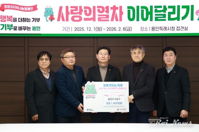 [ 로이뉴스(Roi News) 이지수 기자 ] 용인도시공사는 19일 ‘노사합동 사랑의열차 이어달리기’ 성금 1,400만원을 용인특례시에 기탁했다.