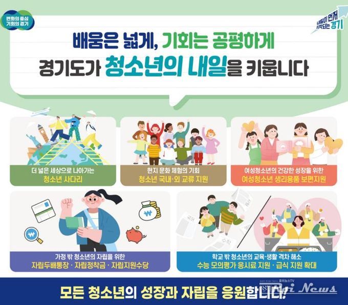 [ 로이뉴스(Roi News) 이지수 기자 ] 경기도가 청소년의 건강한 성장과 배움 기회, 생활 안정을 위해 급식, 학습·진로·자립 지원까지 아우르는 다양한 정책을 추진한다.